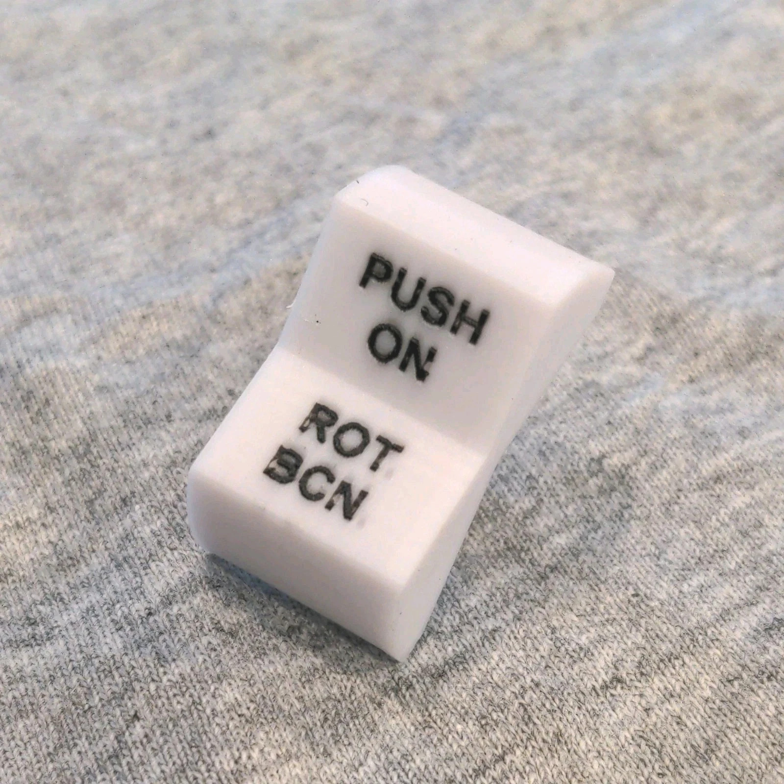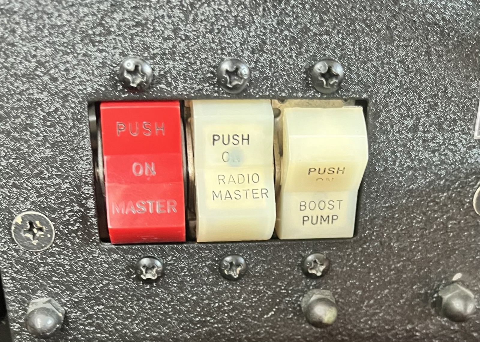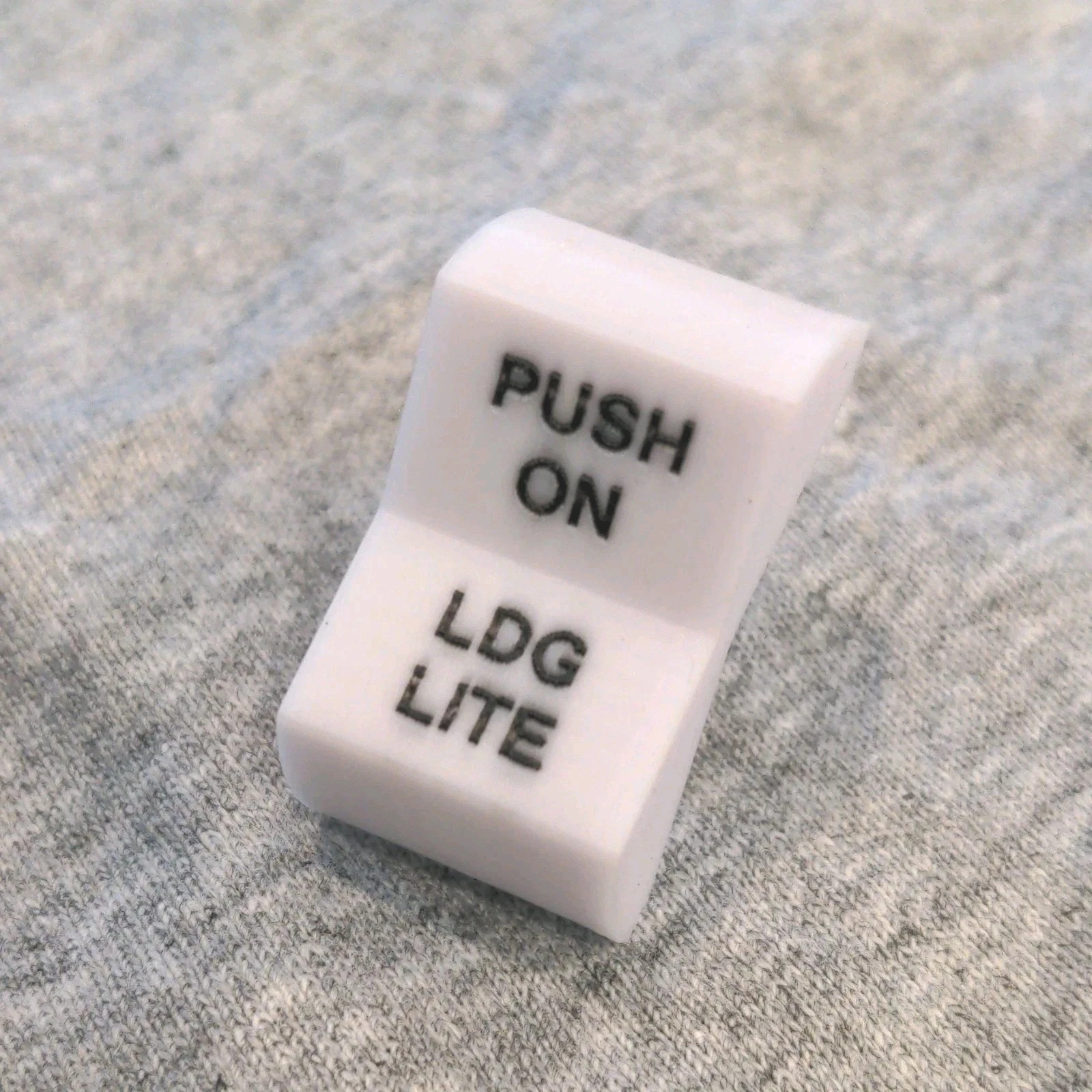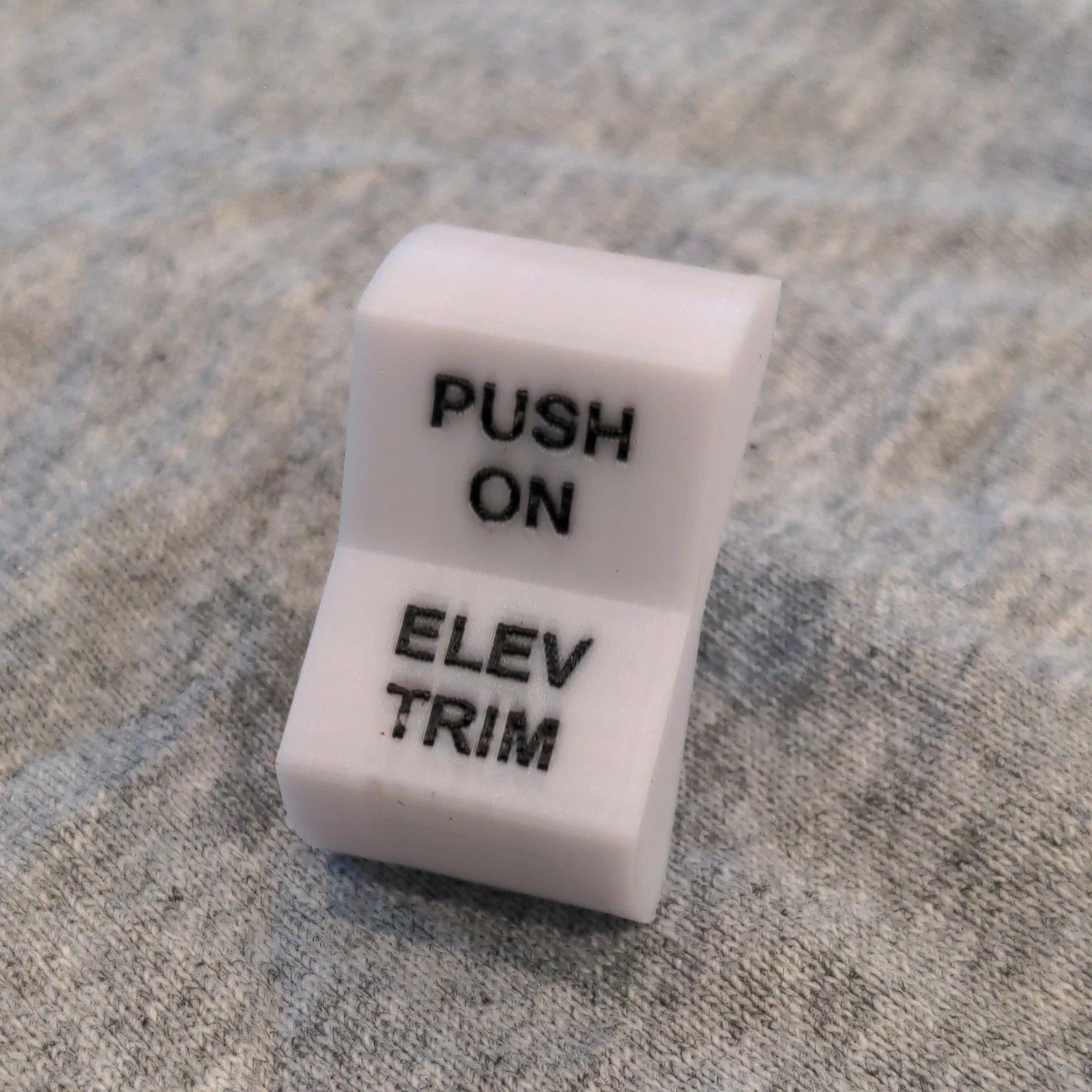 These switch covers are printed from Acrylonitrile Butadiene Styrene (ABS). ABS is a high temperature plastic that can withstand high temperatures found in aircraft cockpits and is used extensively for aircraft trim pieces by OEM manufacturers (Cessna, Piper, Mooney).