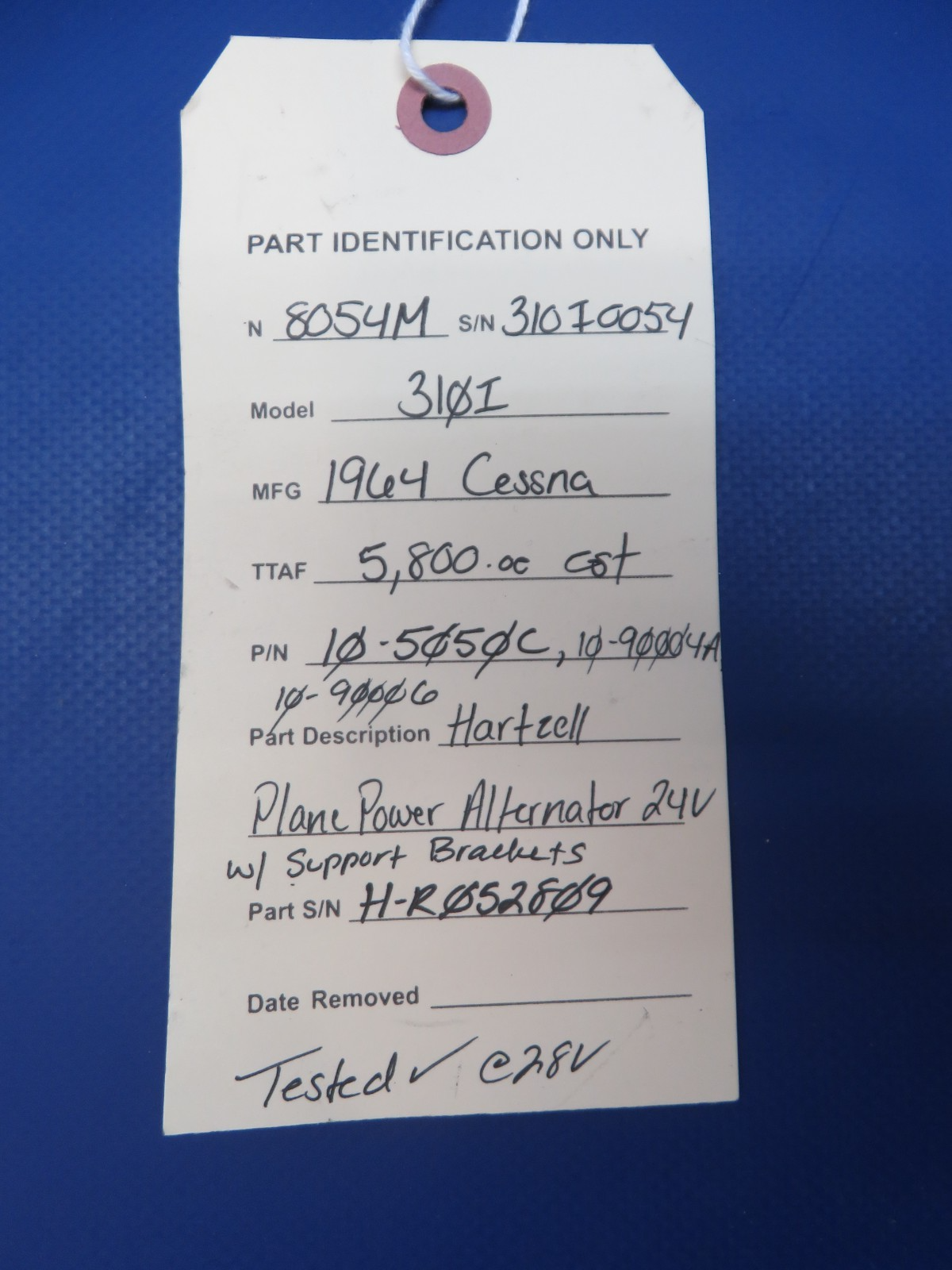 Cessna 310I Hartzell Plane Power Alternator 24v with Support Brackets. P/N 10-5050C, 10-90004A, 10-90006, 10-9005B, 10-9005A, 10-1009. S/N H-R052809. This item was recently tested at 28v and found to be in working condition. Removed in good condition from a parted out 1964 Cessna 310I N8054M, S/N 310I0054. Est. TTAF 5,800.0. Guaranteed to pass inspection or your money back.