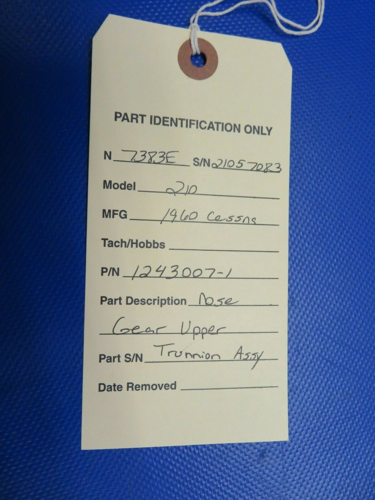 Cessna 210 Nose Gear Upper Trunnion. P/N 1243007-1. Alt P/N 1243403-1. Removed in good condition from a 1960 Cessna 210 N7383E, S/N 21057083. Guaranteed to pass inspection or your money back.