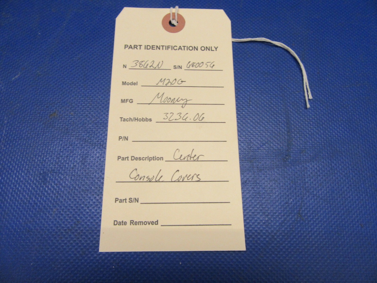 Mooney M20G Center Console Covers. (Cover for Trim / Flap is included). Removed in good condition from a parted out 1968 Mooney M20G N3862N, S/N 680056. TTAF 3,236.0. Guaranteed to pass inspection or your money back.