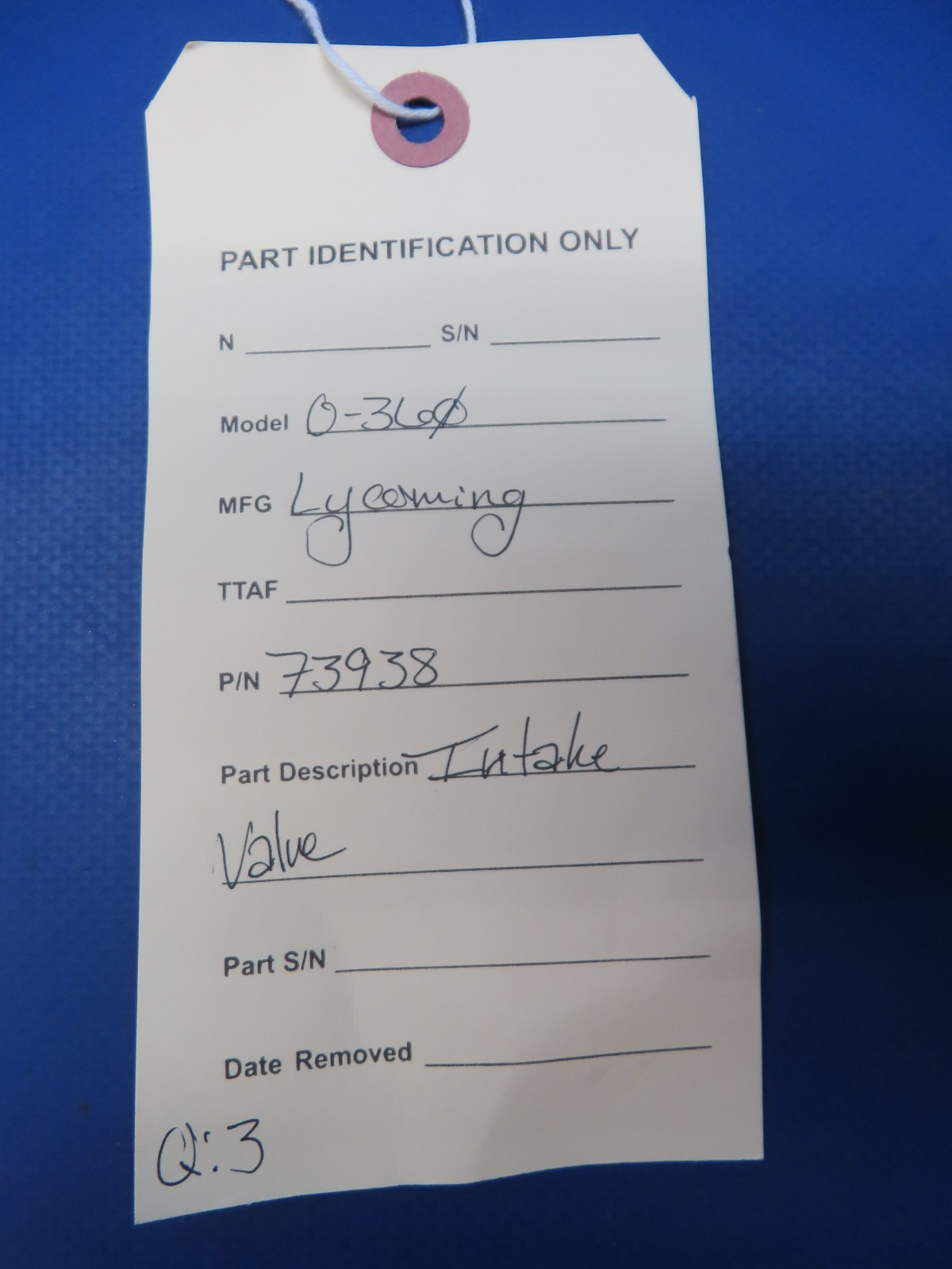Lycoming O-360 Intake Valve. P/N 73938. Due to multiple quantities buyer may not receive exact item pictured. Guaranteed to pass inspection or your money back.