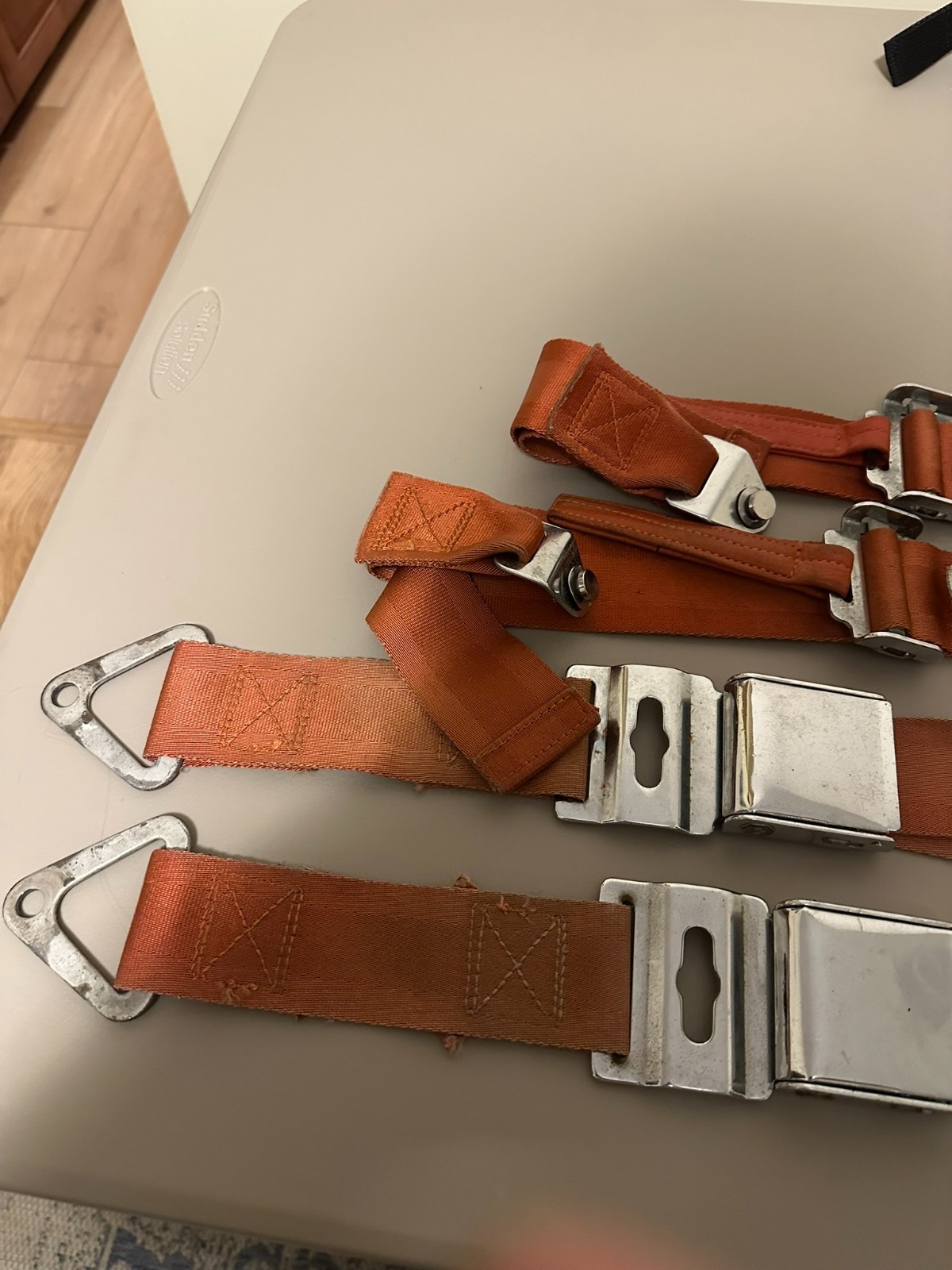 Seat belts w/ Diagonal harness Pilot and Co-Pilot from Cessna 150L 1974. These were removed from my aircraft during an interior upgrade to include new seatbelts. These were the original seatbelts that came from the factory with the aircraft.
