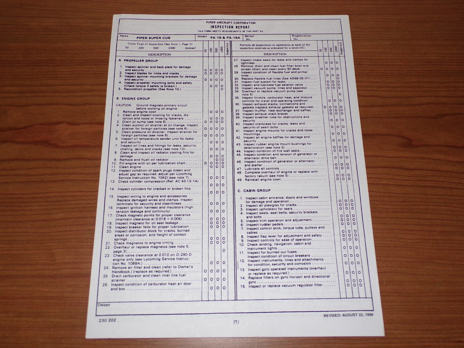 Piper PA-18 Super Cub Inspection Guide (5/Pack) P/N 230-202Click here to purchase or contact the seller of this item on eBay |