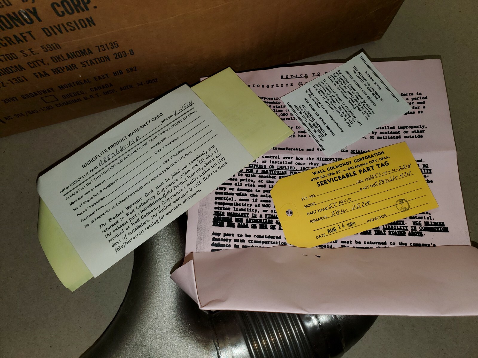 Overhauled Cessna 310 / 320 / 401 / 402 LH Exhaust Stack Assembly PN# 0850660-13 - Remanufactured - Never Installed or Run - May have minor scratches and dings from storage - No major damage, defects or cracks of any kind - Excellent Condition - Includes Yellow Tag & Paperwork - In Original Packaging - Envelopes were opened for photos and to verify contents - Was purchased with other new and overhauled aircraft exhaust - SN# 4-2514