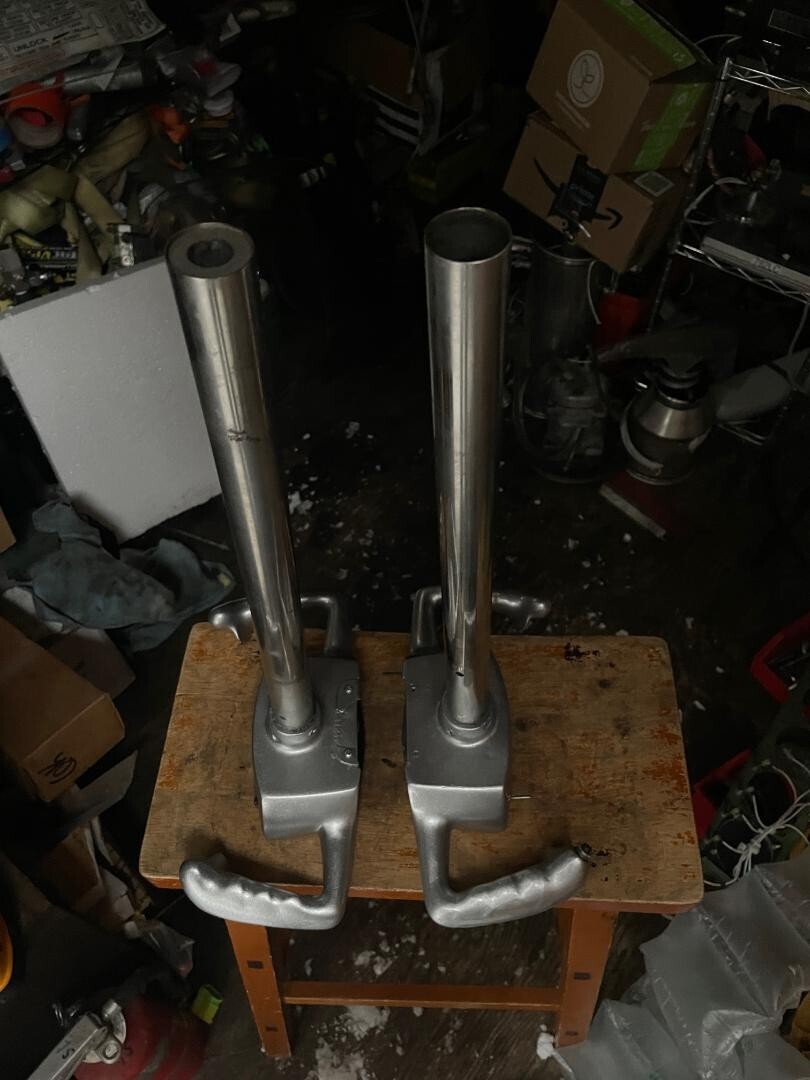 Connecting poles on both. Metallic silver.