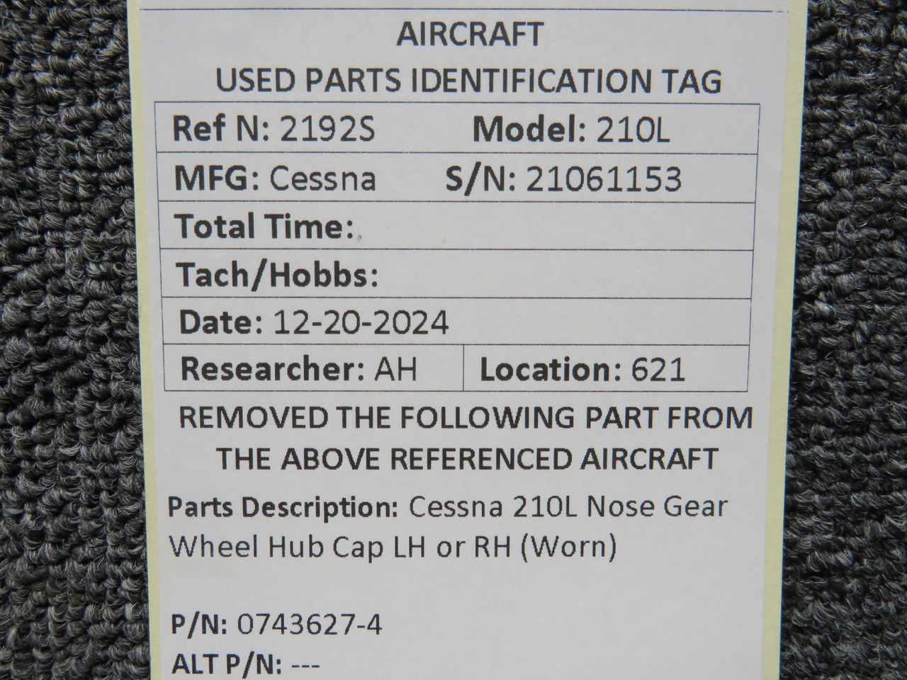 0743627-4 Cessna 210L Nose Gear Wheel Hub Cap LH or RH (Worn)Click here to purchase or contact the seller of this item on eBay |