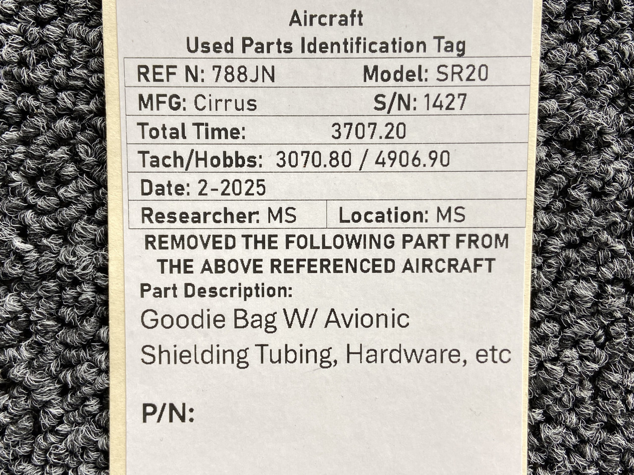 - Goodie Bag includes Avionics Shield Tubing, Hardware, etc for the 2004 Cirrus SR20