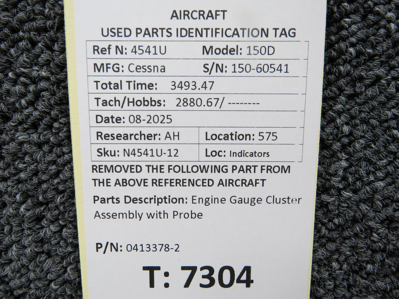 0413378-2 Cessna 150D Engine Gauge Cluster Assembly with Oil Temp ProbeClick here to purchase or contact the seller of this item on eBay |