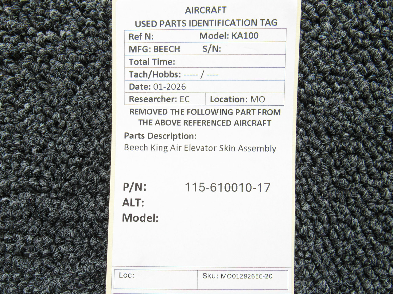 115-610010-17 Beech King Air Elevator Skin Assembly