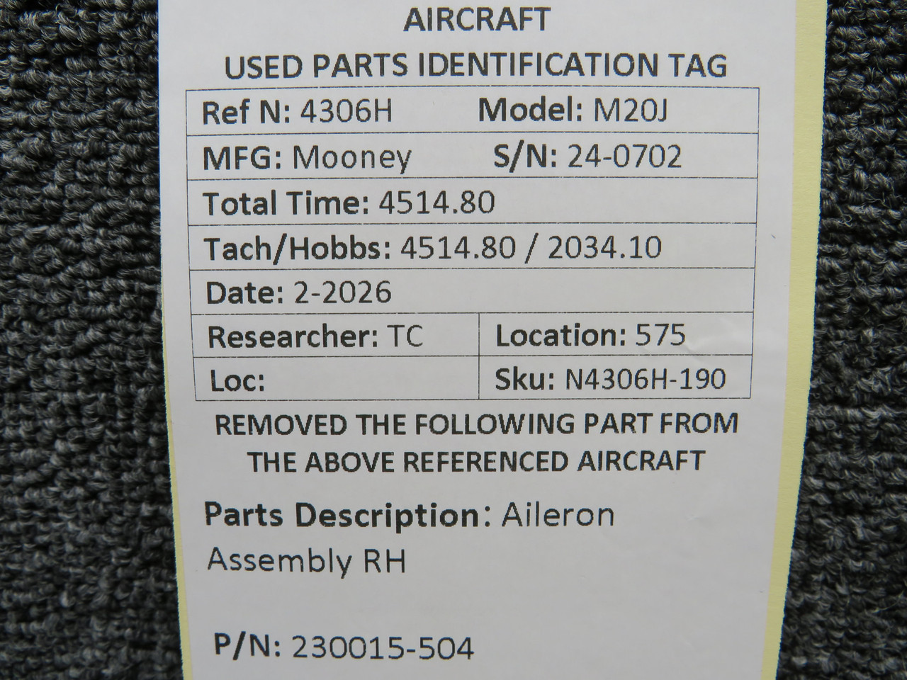 230015-504 Mooney M20J Aileron Assembly RH
