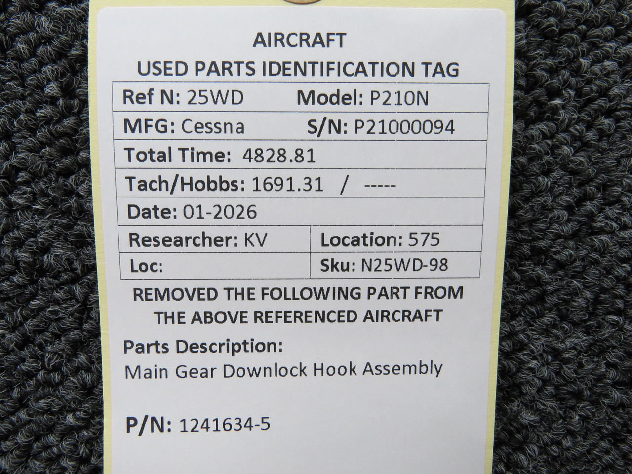1241634-5 Cessna P210N Main Gear Downlock Hook Assembly