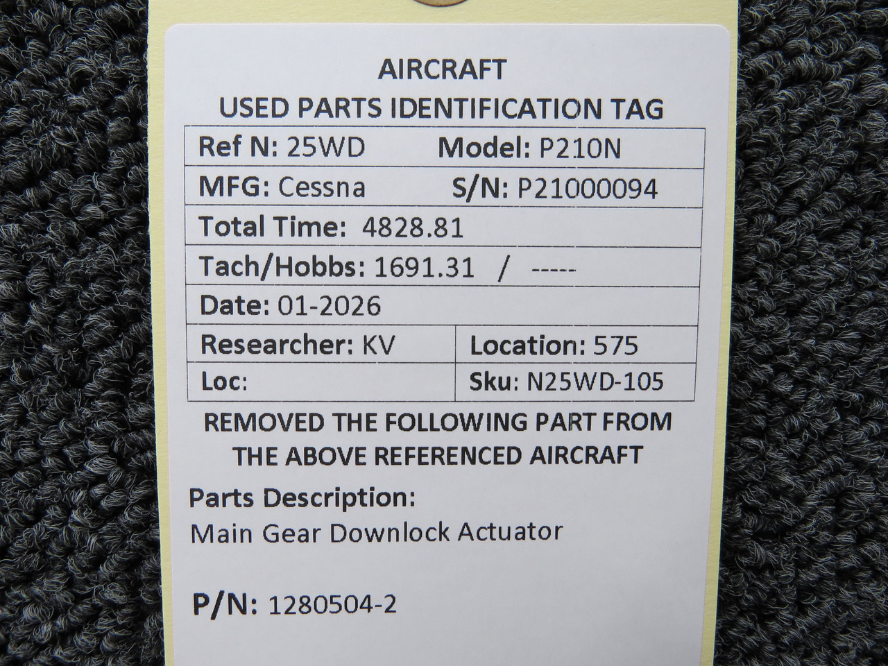 1280504-2 Cessna P210N Main Gear Downlock Actuator