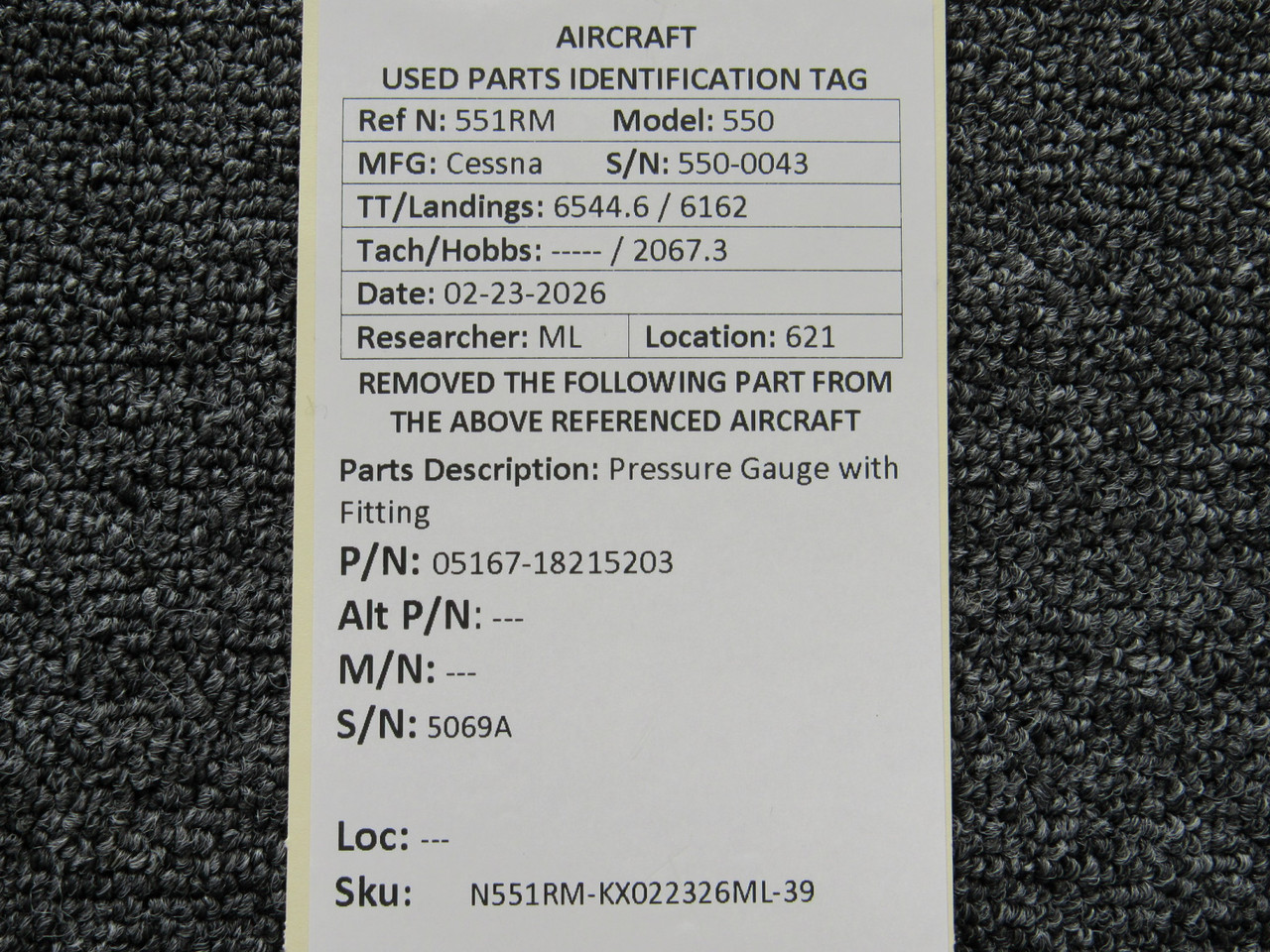 05167-18215203 Cessna Citation 550 Pressure Gauge with Fitting