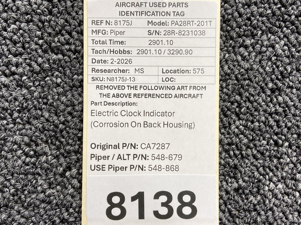CA7287 (Use: 548-868) Piper PA28RT-201T Electric Clock Indicator