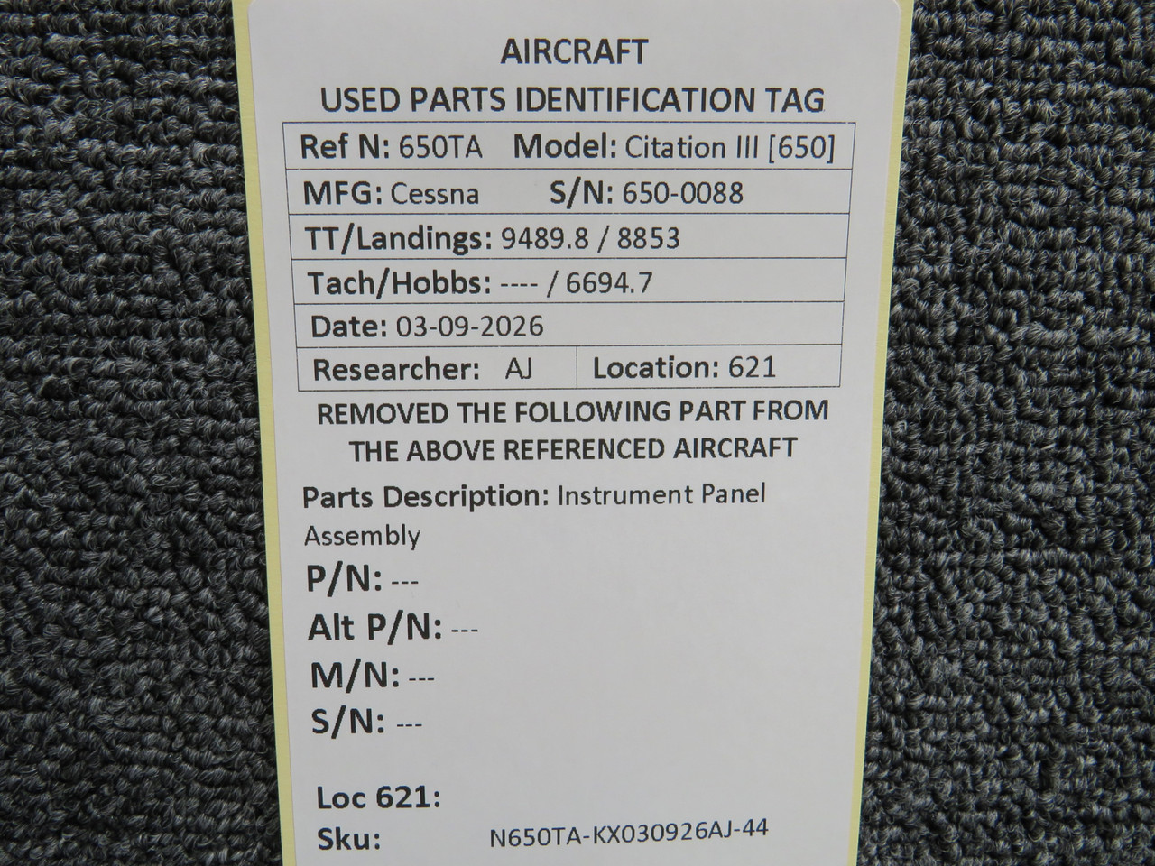 Cessna Citation III 650 Instrument Panel Assembly