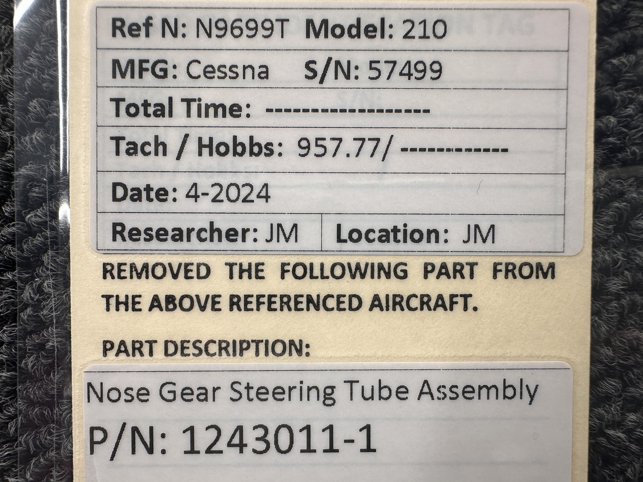 1243011-1 Cessna 210 Nose Gear Steering Tube Assembly