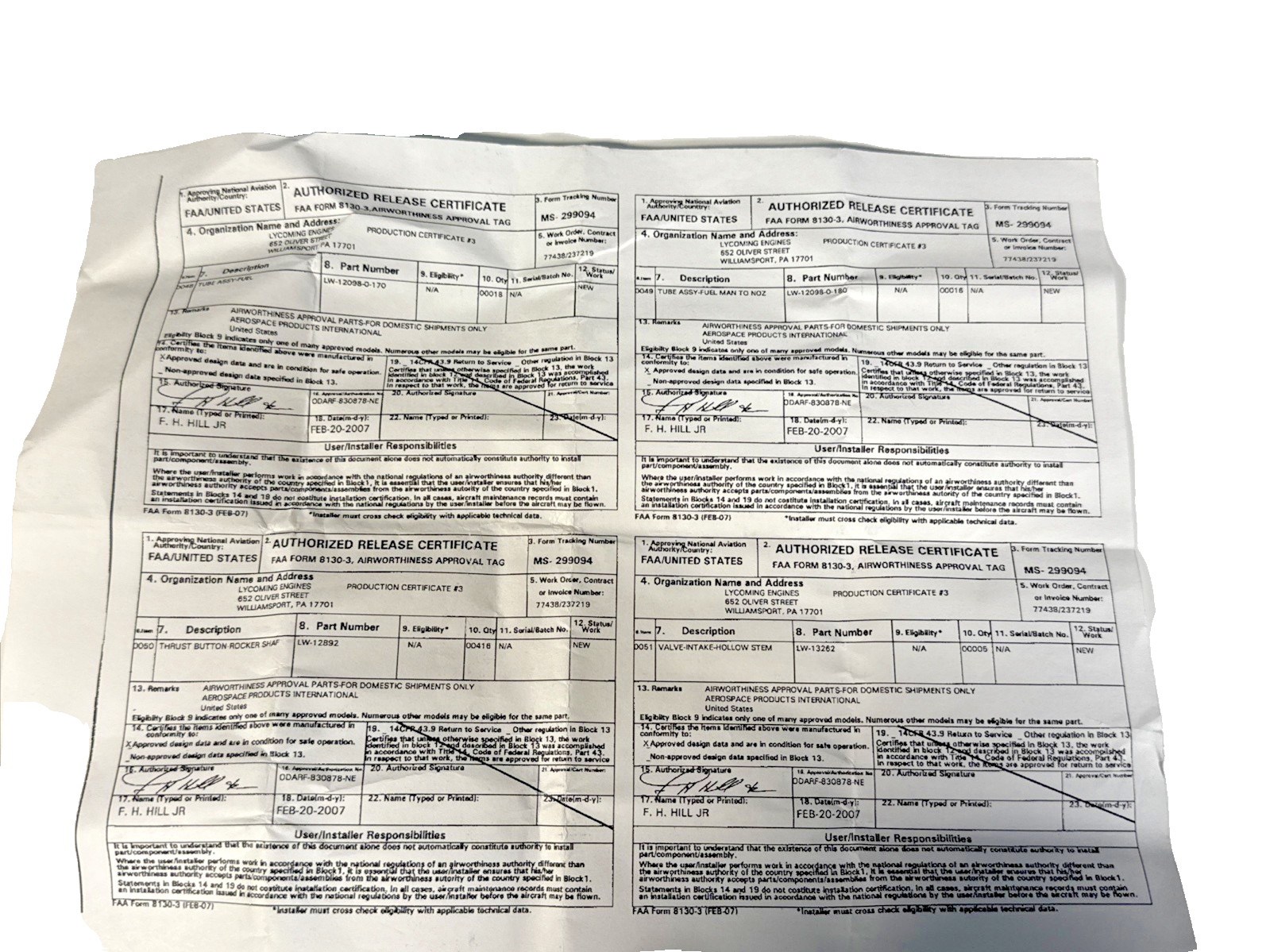 05K21273 Lycoming Kit Cylinder Piston / Ring Assembly IO540-C4BSClick here to purchase or contact the seller of this item on eBay |