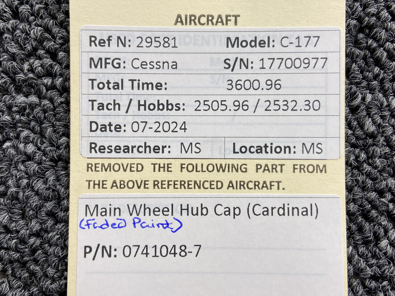 0741048-7 Cessna 177 Main Wheel Hub Cap (Cardinal, Faded Paint)