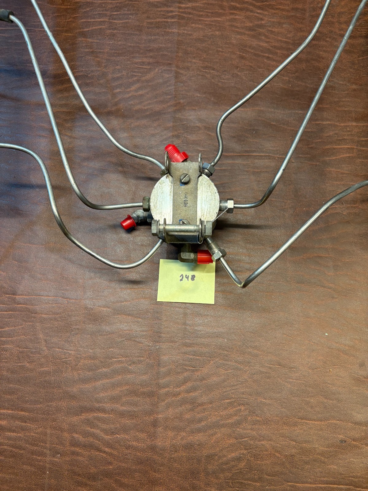THIS IS A USED, AS REMOVED, COMPLETE FLOW DIVIDER, LINE, AND SUPPORT BRACKETS #64102-118A. THESE WERE REMOVED FROM A SENECA II AIRCRAFT WITH A CONTINENTAL TSIO-360 ENGINE. BUYER TO DETERMINE AIRWORTHINESS