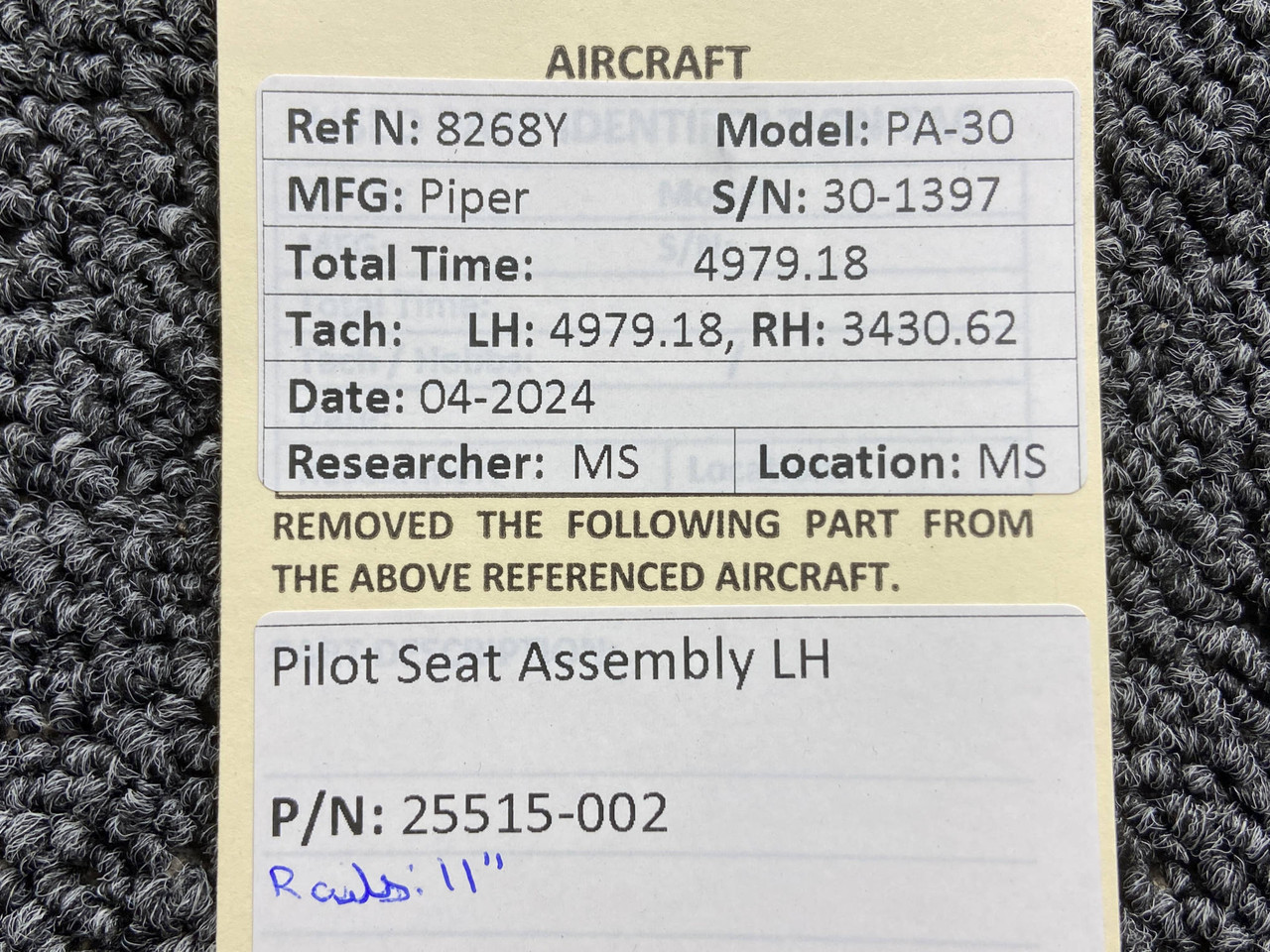 25515-002 Piper PA30 Pilot Seat Assembly LH (Rails: 11?)