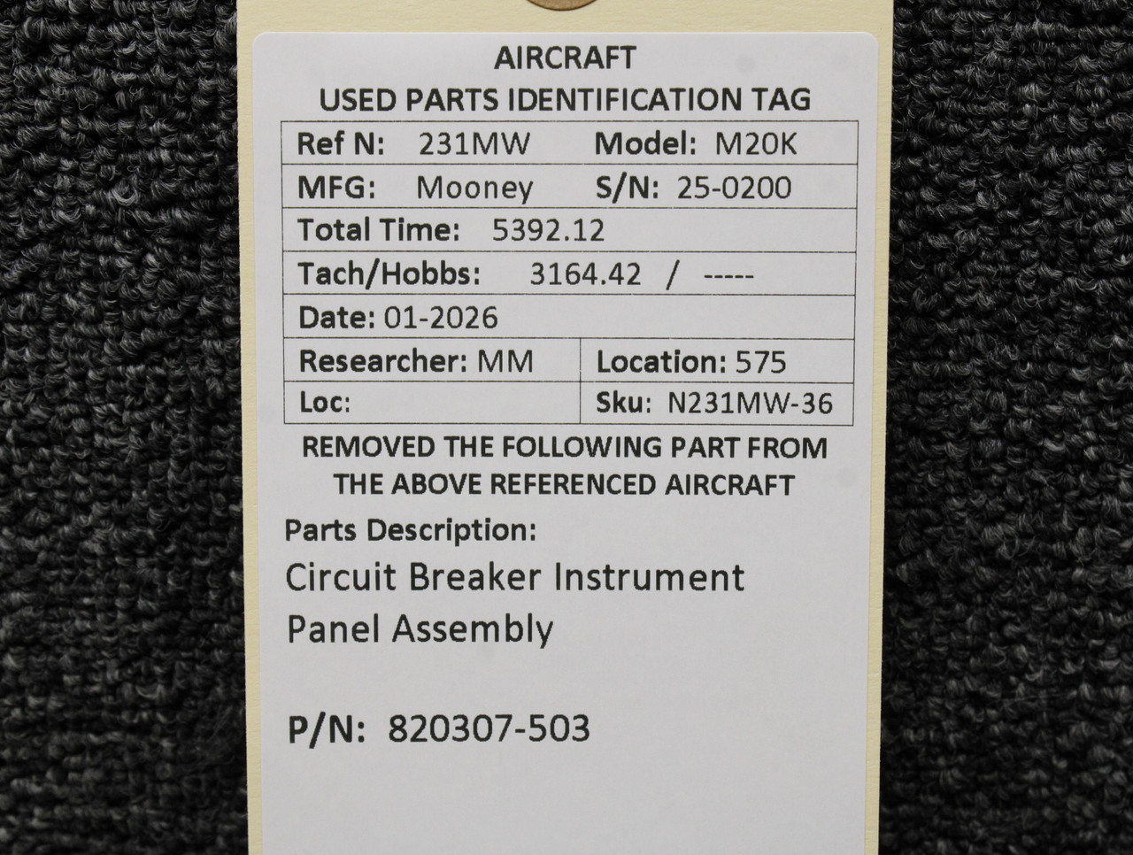 820307-503 Mooney M20K Circuit Breaker Instrument Panel AssemblyClick here to purchase or contact the seller of this item on eBay |