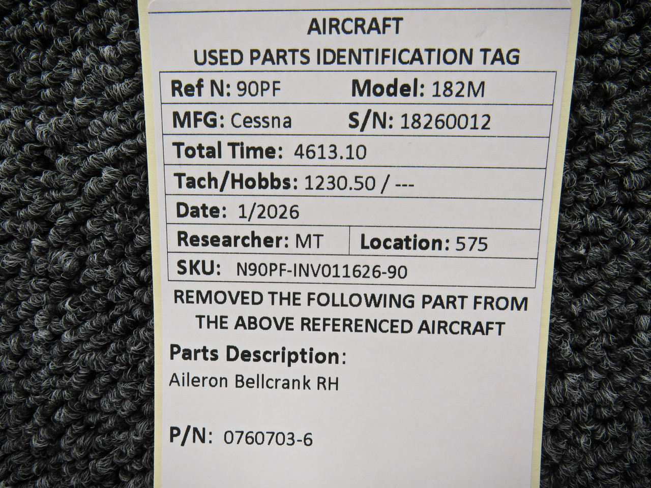 0760703-6 Cessna 182M Aileron Bellcrank RH