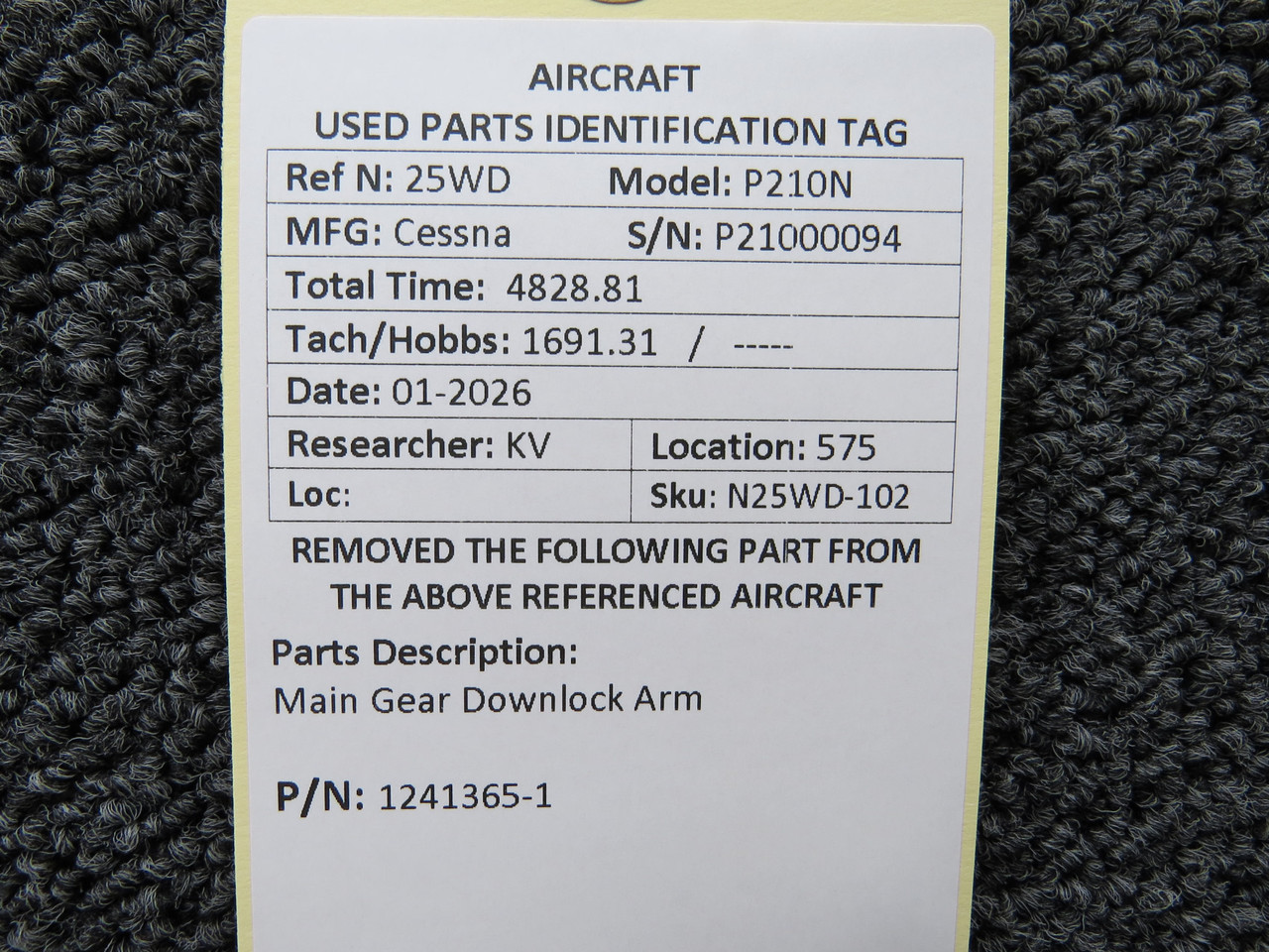 1241365-1 Cessna P210N Main Gear Downlock Arm
