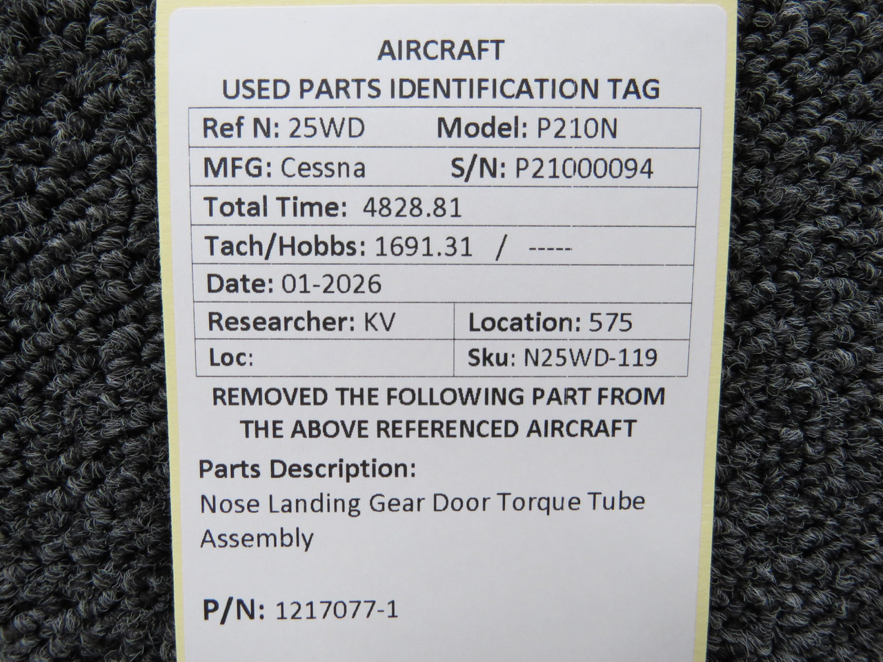 1217077-1 Cessna P210N Nose Landing Gear Door Torque Tube AssemblyClick here to purchase or contact the seller of this item on eBay |