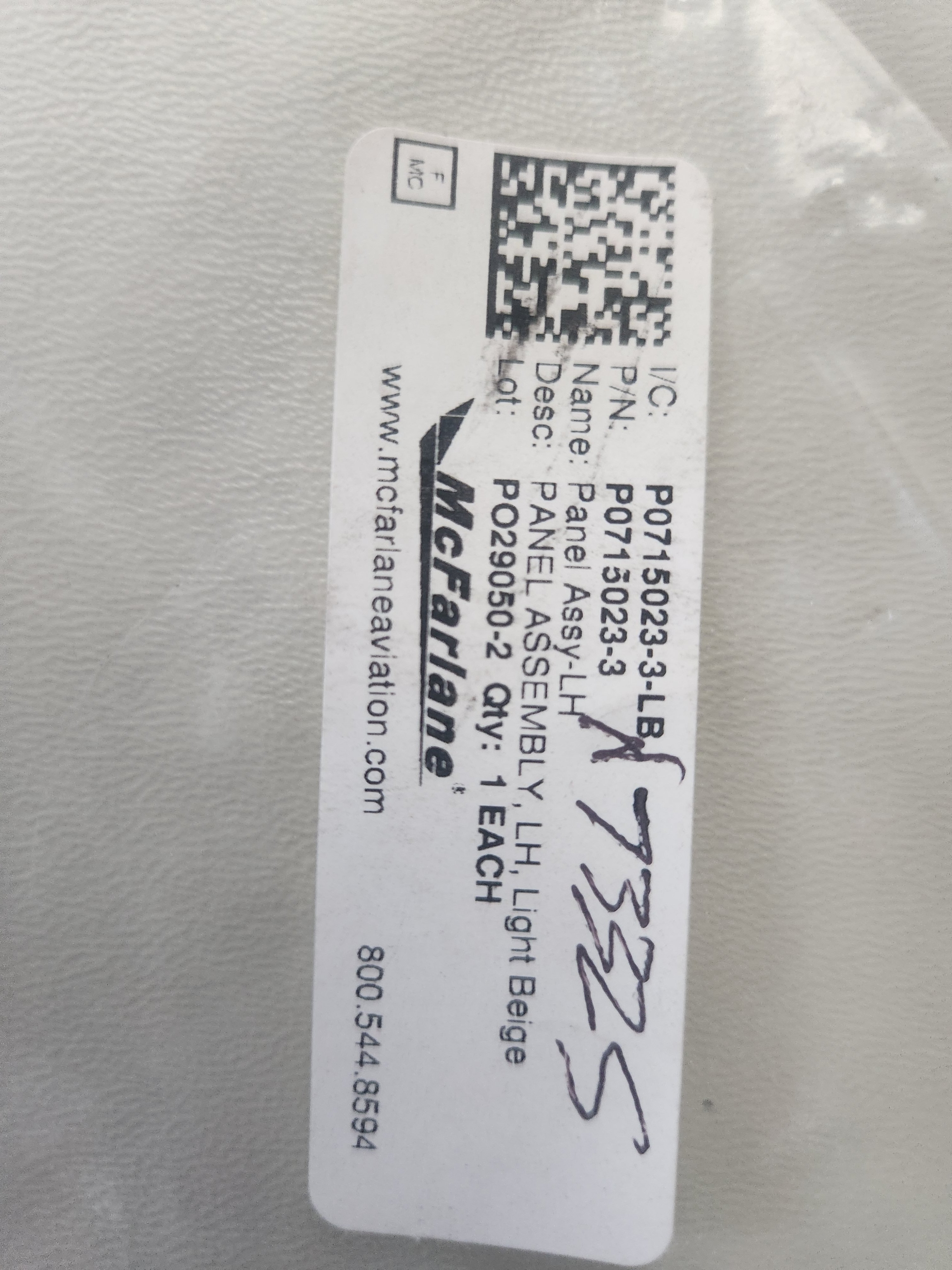 Cessna 182P 182Q Rear Baggage Area Plastic P0715023-3-LB. New old stock still in bag. Still pliable and not brittle.