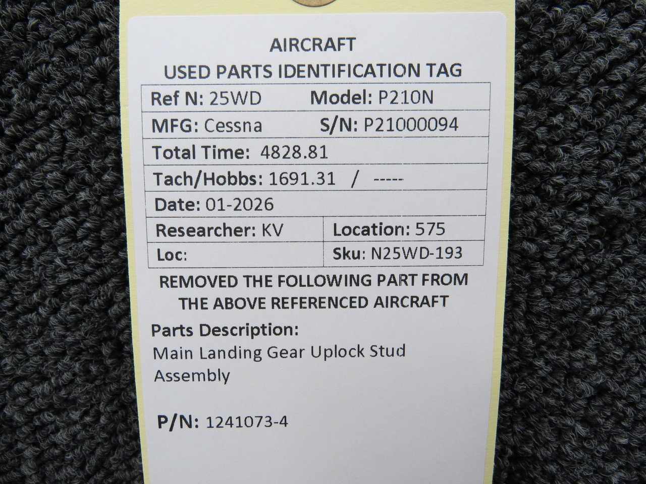 1241073-4 Cessna P210N Main Landing Gear Uplock Stud Assembly