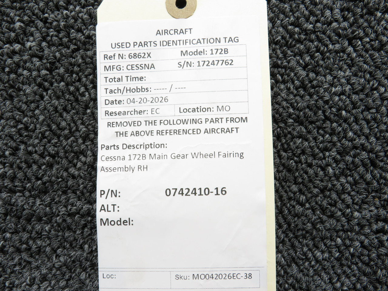0742410-16 Cessna 172B Main Gear Wheel Fairing Assembly RH
