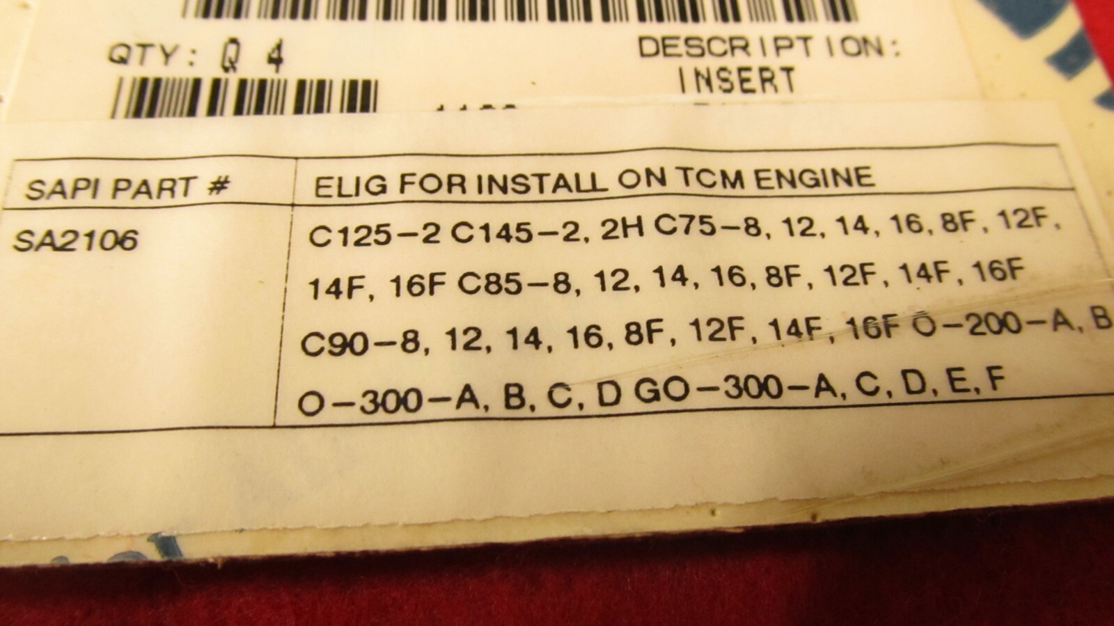Lot of 3 superior Continental C145 thru O300 valve guides inserts SA2106 P10Click here to purchase or contact the seller of this item on eBay |