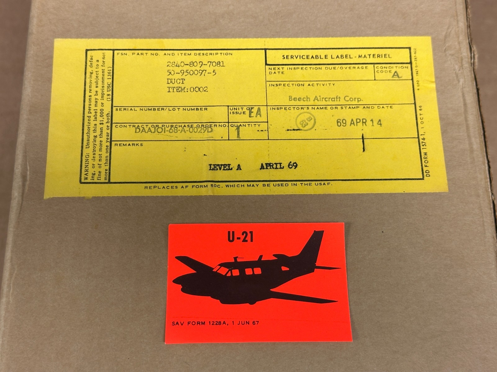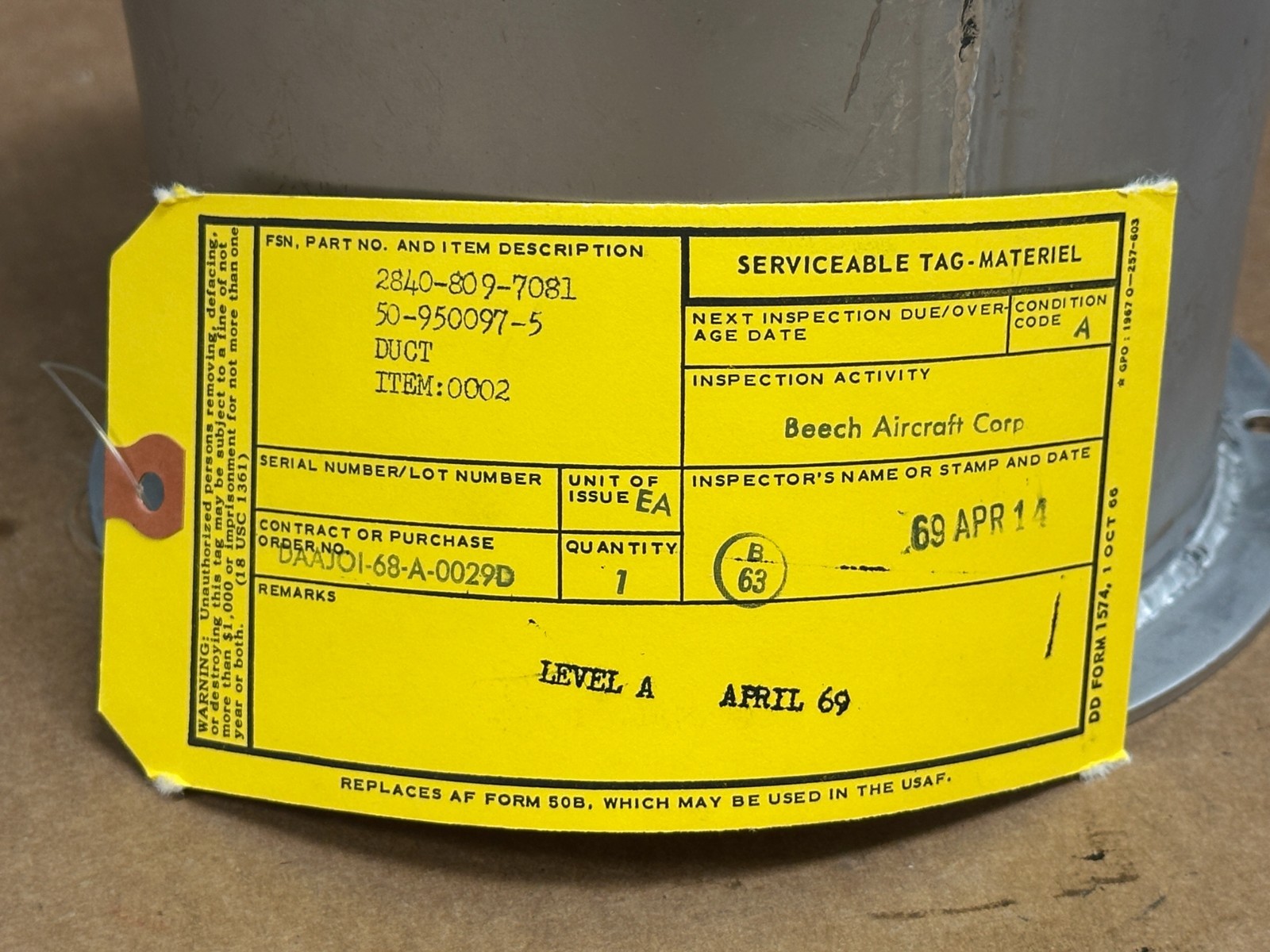 Buyer receives Beechcraft King Air U-21 Duct Exhaust P/N 50-950097-5 New Surplus. Please contact with any questions.