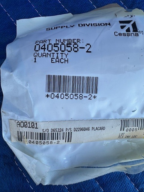 Cessna Aircraft Placard, P/N 0405058-2 (New Surplus)Click here to purchase or contact the seller of this item on eBay |