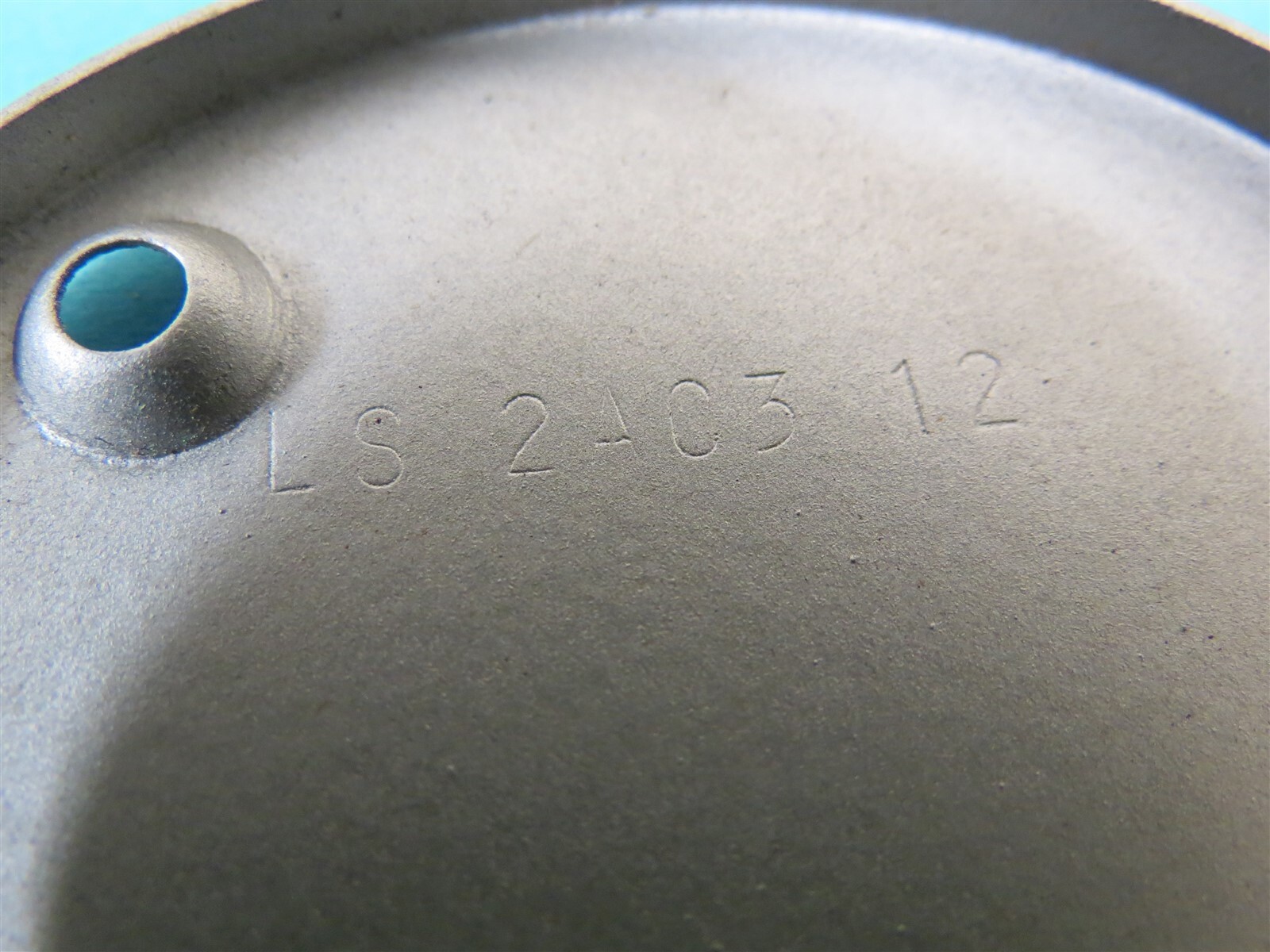 One Original LS2AC3-12 Dust Cover for 10.00 S.C. Tailwheel in new surplus condition plus 3 mounting screws. These fit several WWI and WWII aircraft such as Stearman and Waco aircraft plus others. It measures 3-1/4” diameter with a .200 lip on the outer edge and has 3 countersunk/dimpled holes for the mounting screws. See Illustration Items 96 & 94.