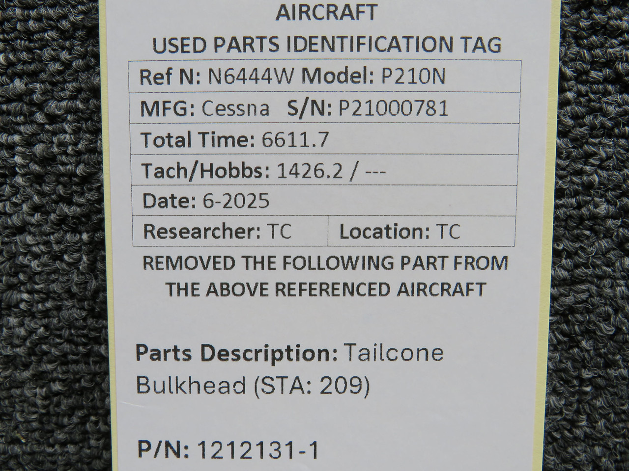 1212131-1 Cessna P210N Tailcone Bulkhead (STA: 209)