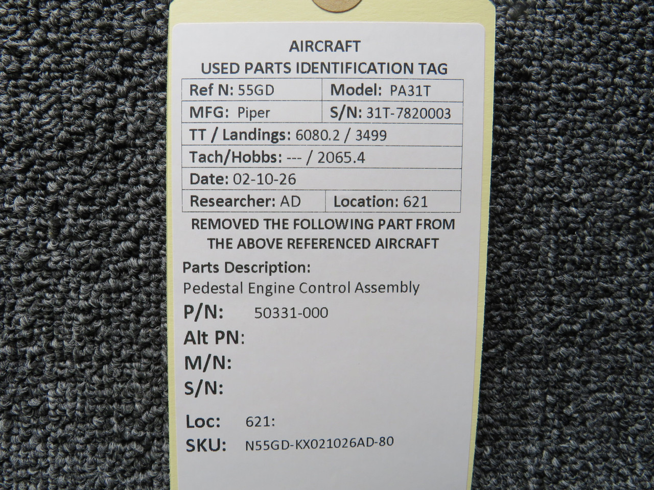 50331-000 Piper PA-31T Pedestal Engine Control AssemblyClick here to purchase or contact the seller of this item on eBay |