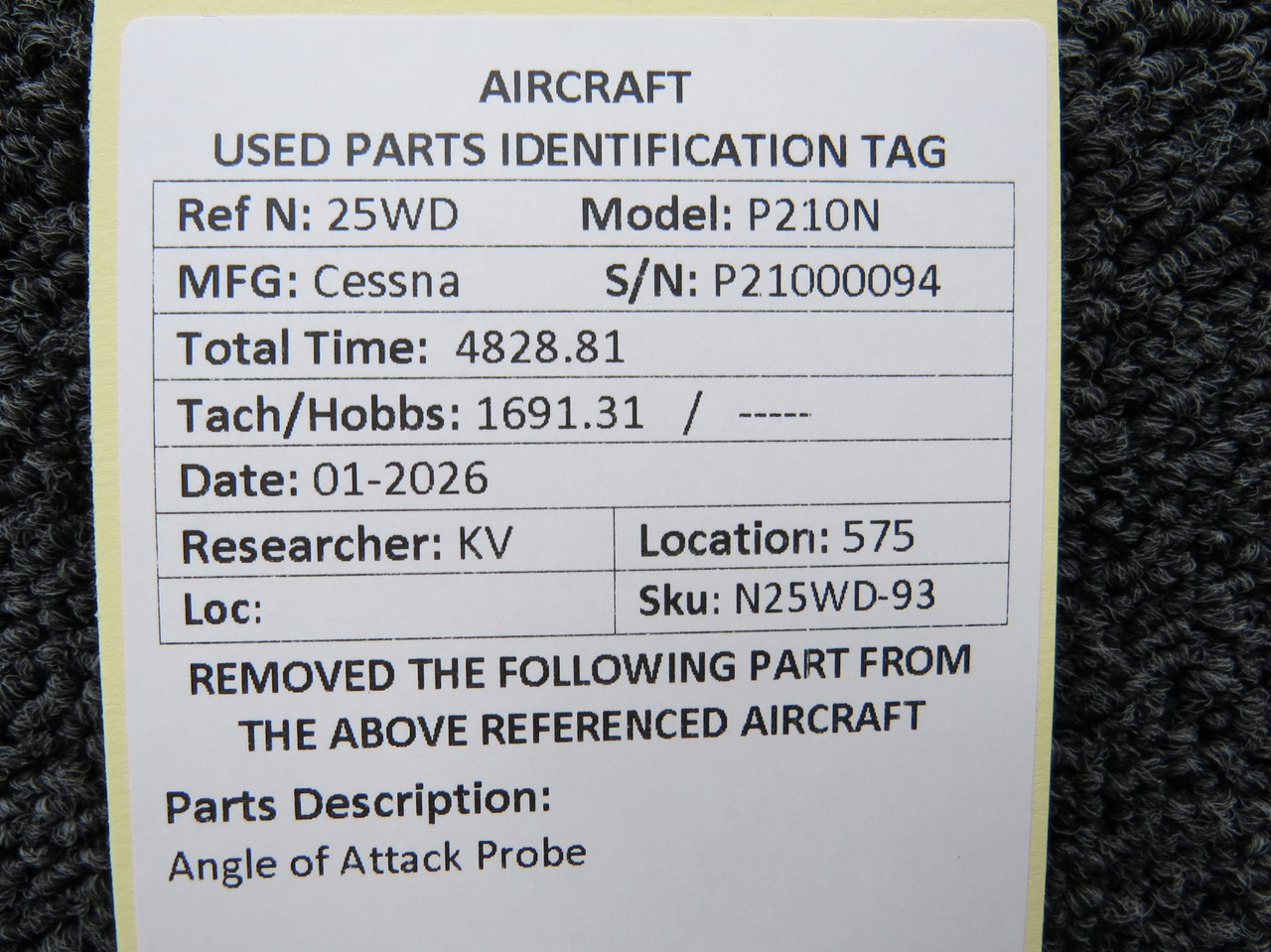 Cessna P210N Angle of Attack ProbeClick here to purchase or contact the seller of this item on eBay |