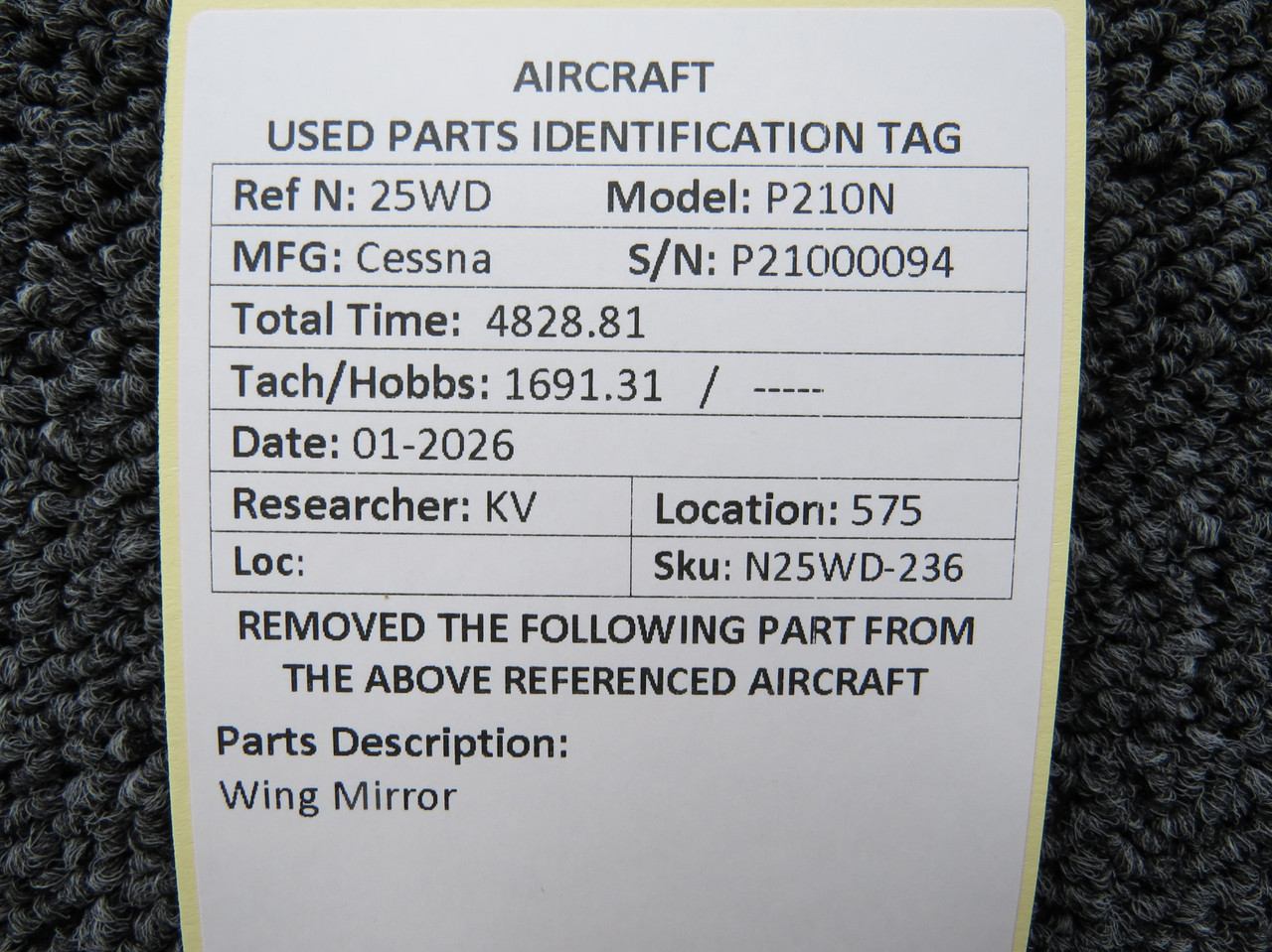 Cessna P210N Wing MirrorClick here to purchase or contact the seller of this item on eBay |