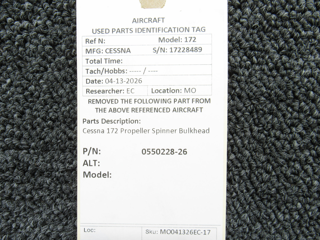 0550228-26 Cessna 172 Propeller Spinner BulkheadClick here to purchase or contact the seller of this item on eBay |