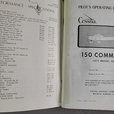 1977 Cessna150 Pilot's Operating Handbook Manual, POH Model 150M CommuterClick here to purchase or contact the seller of this item on eBay |