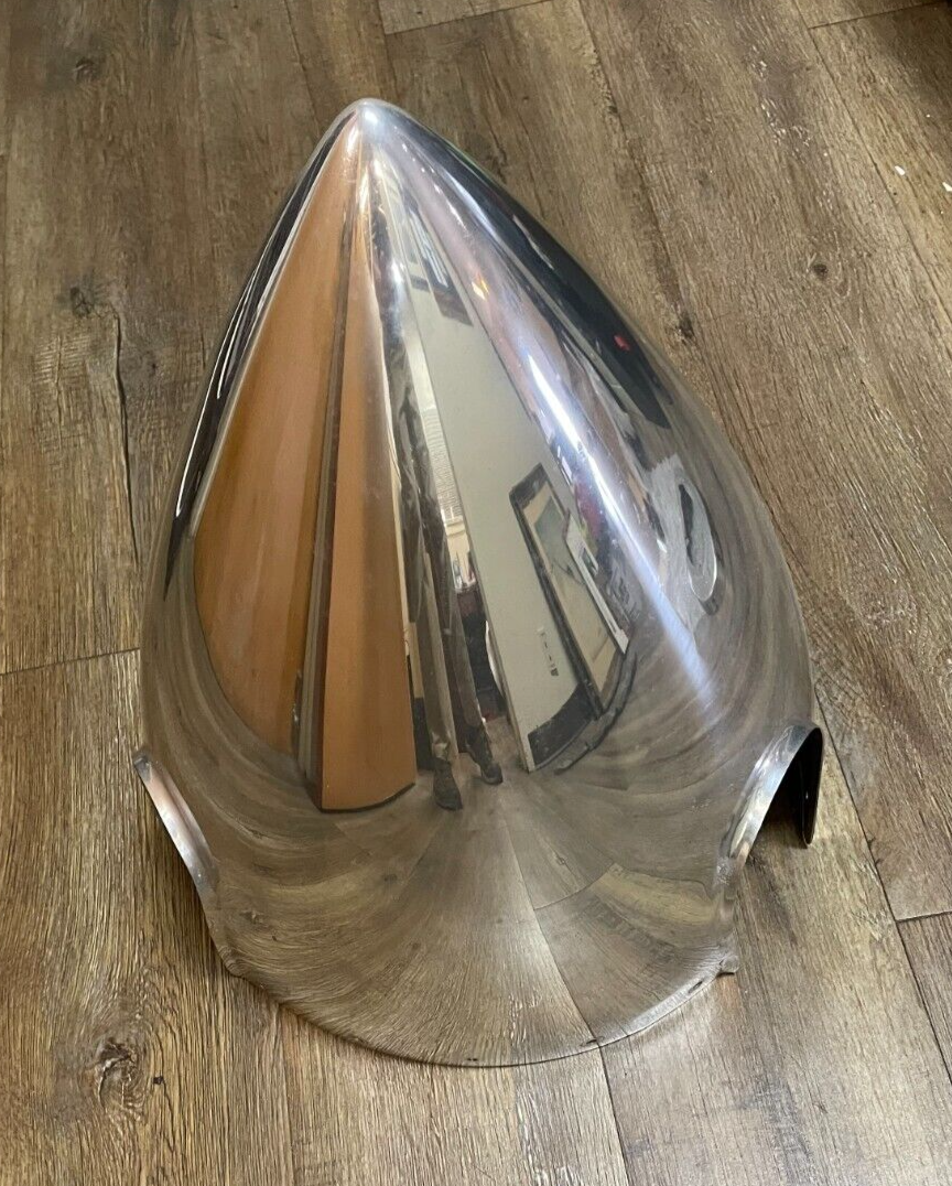 Polished one piece late model spinner with bulkhead from Beechcraft 58 Baron with Air conditioning and 3 blade prop.