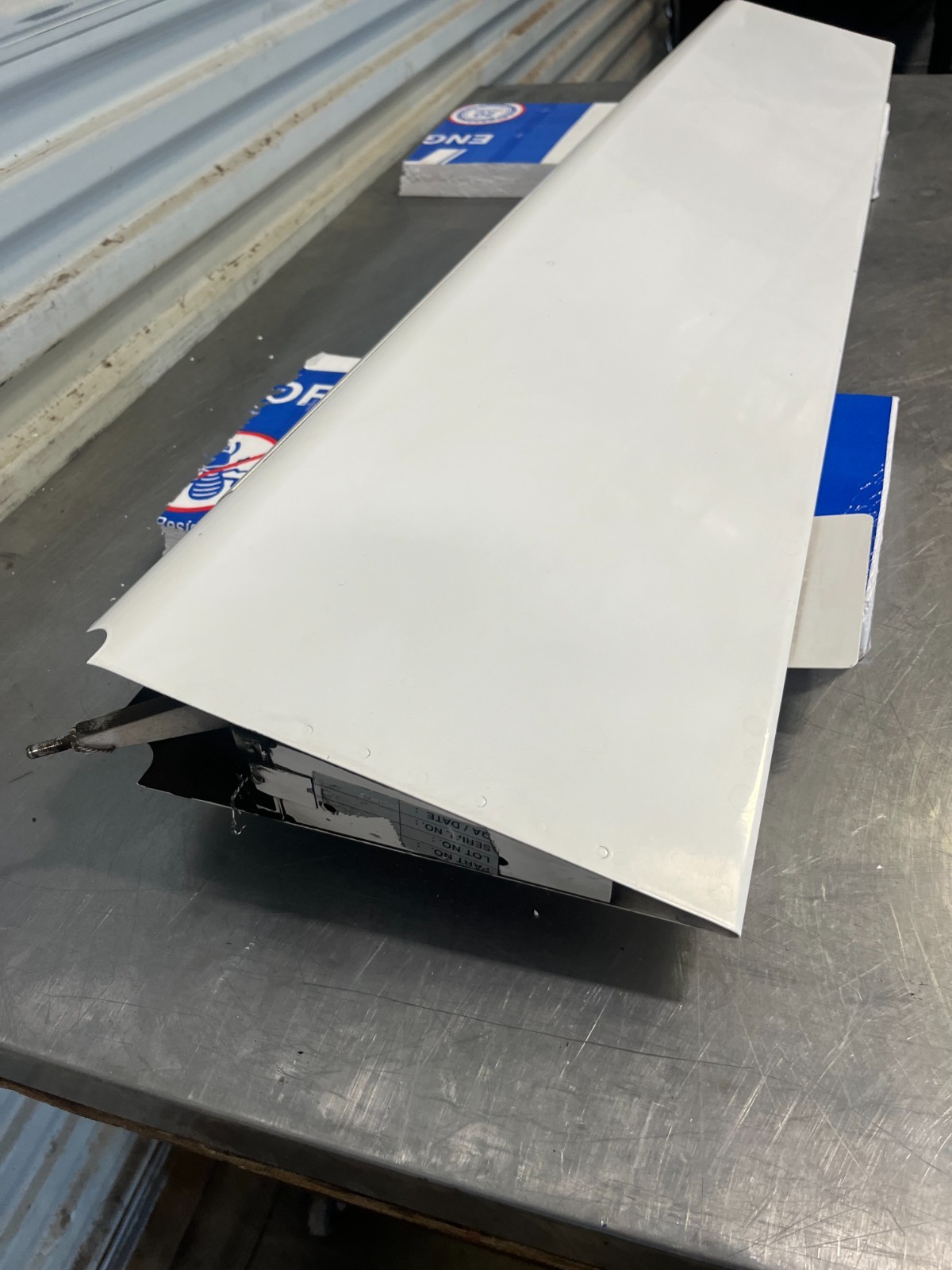Available here is a genuine right-hand aileron removed from a 2005 Cirrus SR-22. The assembly is structurally sound with hinge points and attachment fittings intact. Exterior finish is in good condition, showing only light wear consistent with service. No visible cracks or corrosion were observed during inspection.