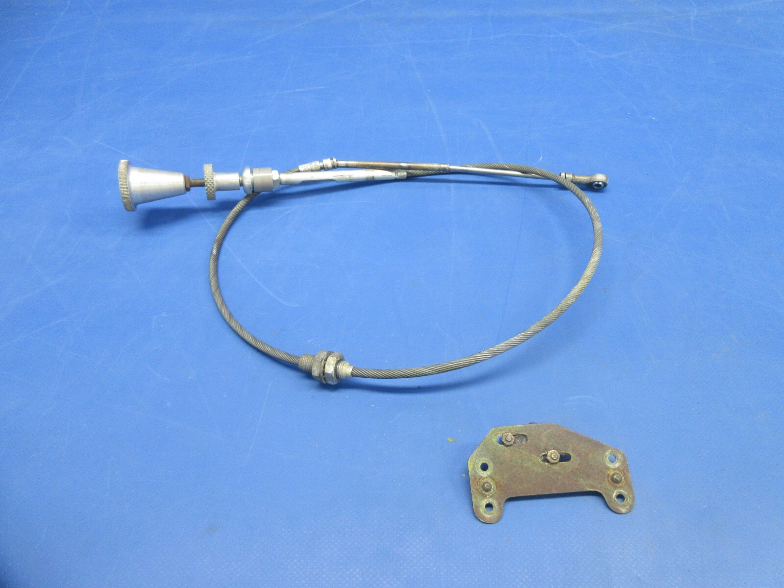 Mooney M20 / M20C Throttle Control Cable Assembly 44" Long. P/N 660190-S. Removed in good condition from a parted out 1966 Mooney M20C N6080Q, S/N 3256. TTAF 3,828.56. Guaranteed to pass inspection or your money back.