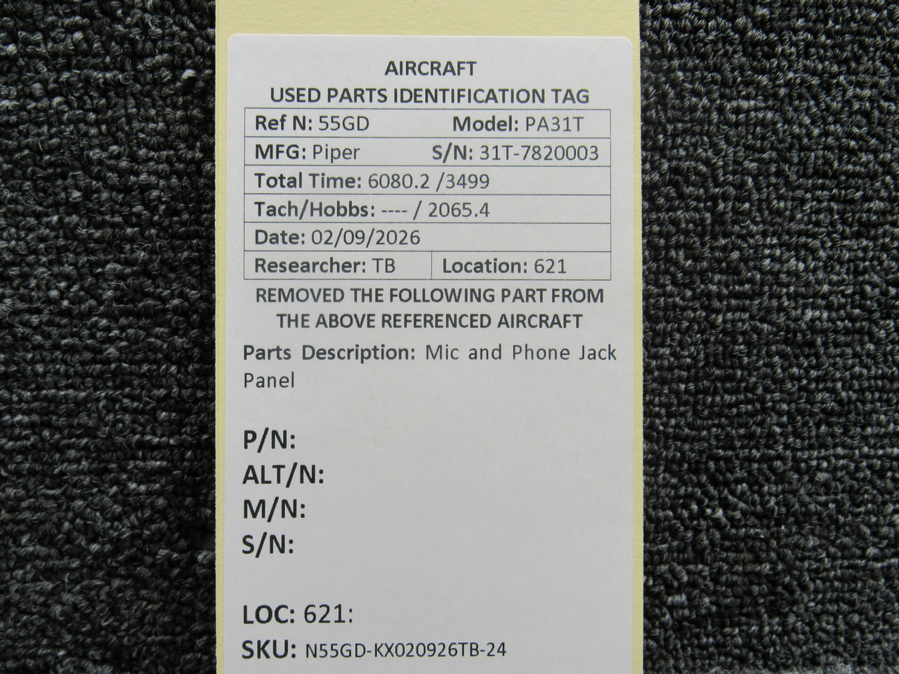 Piper PA31T Mic and Phone Jack PanelClick here to purchase or contact the seller of this item on eBay |